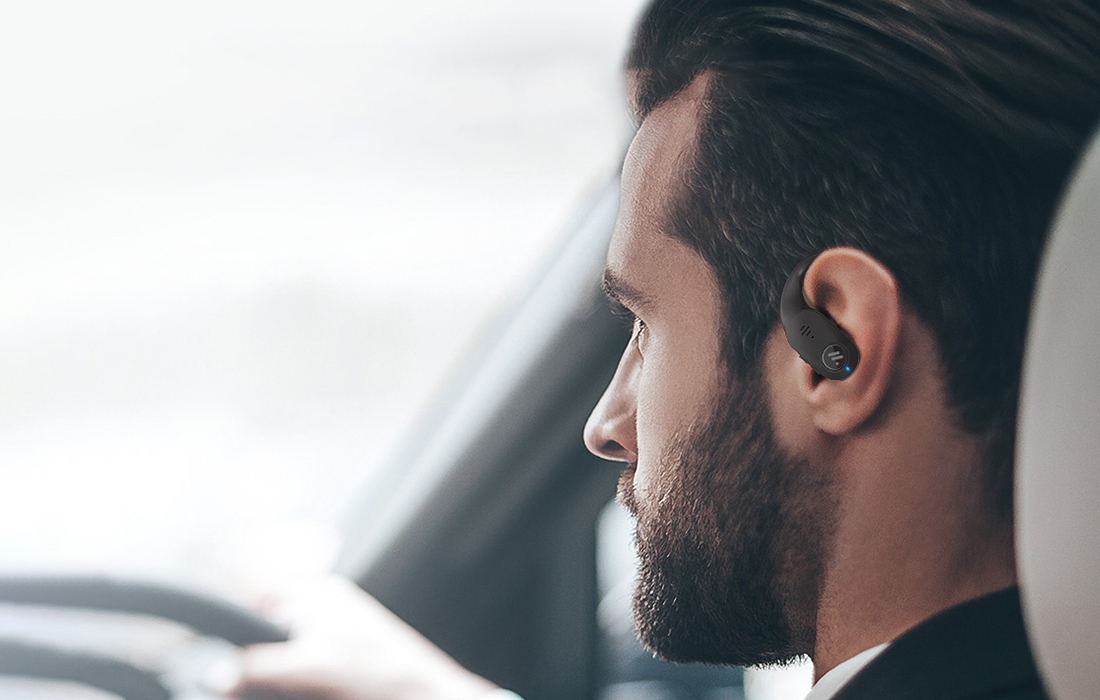 Na słuchawkach znajduje się pole, dzięki któremu możesz pauzować lub przewijać muzykę, regulować poziom głośności lub odebrać połączenie przychodzące. Dzięki temu nie musisz sięgać po telefon, wszystkie te operacje możesz wykonać jednym dotknięciem, na przykład podczas treningu lub jazdy samochodem.