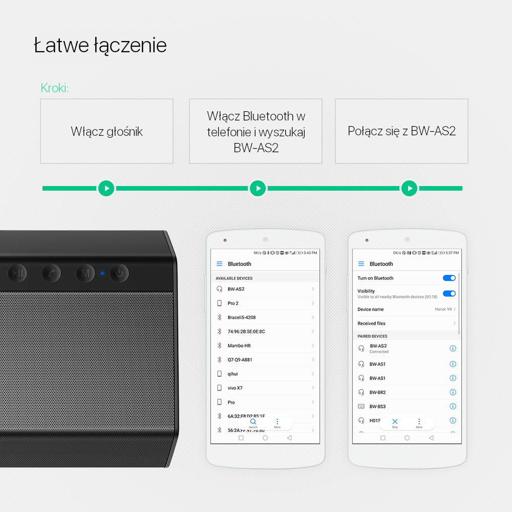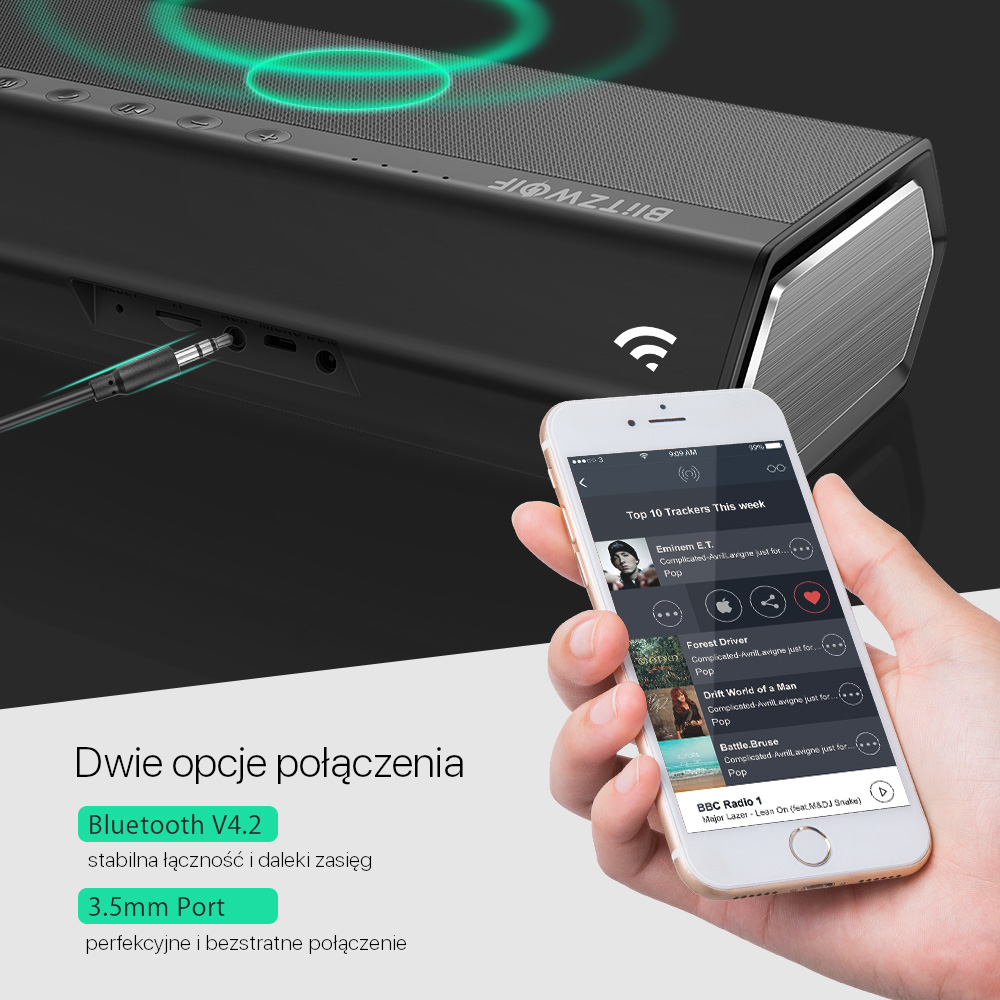 | Czas pracy | 4-5 godzin (70% głośności), 2,5 godziny (maks. głośność) |
