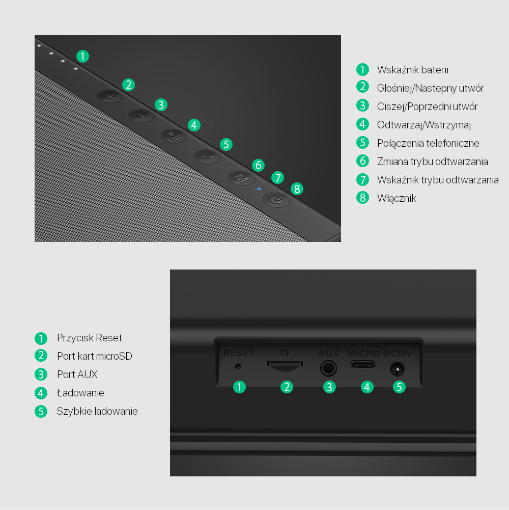 | Złącza | jack 3,5 mm, micro USB, micro SD |