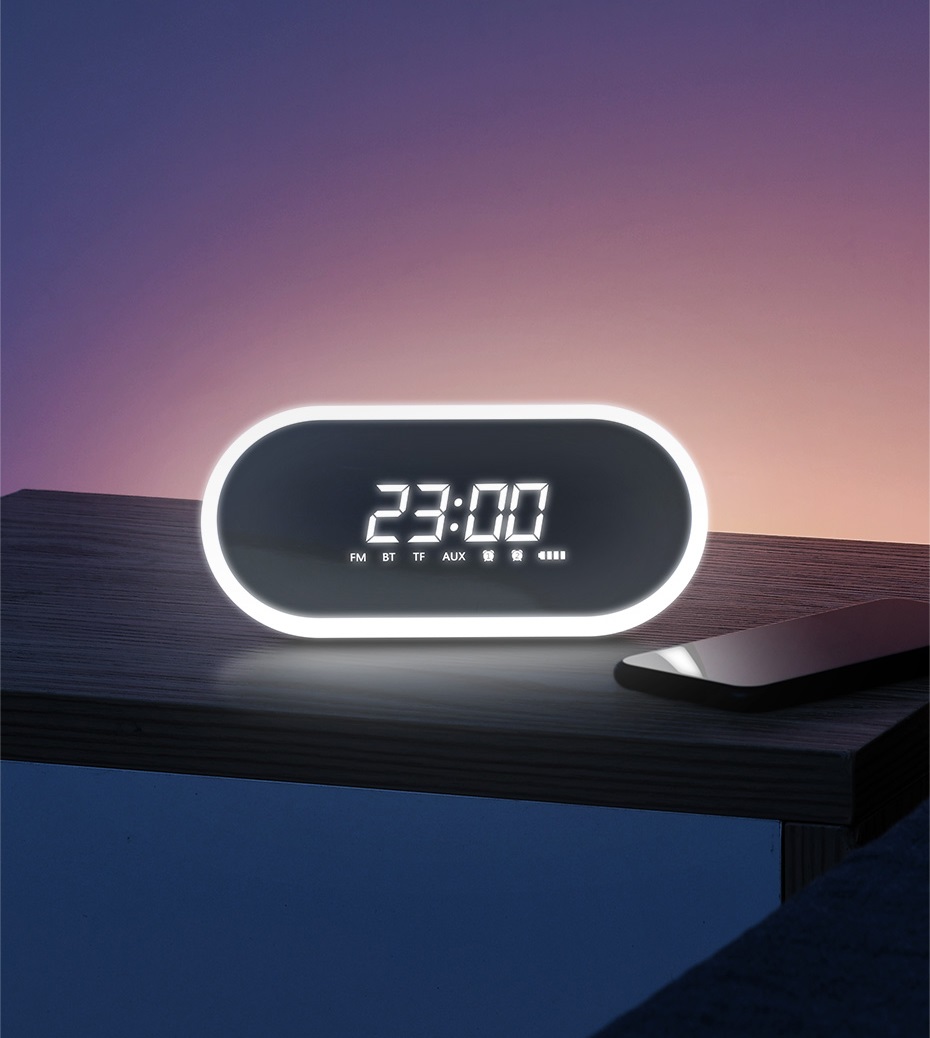 Dzięki głośnikowi 3w1 Baseus codzienne wstawanie może być przyjemnością. Każdego poranka możesz obudzić się z muzyką, którą lubisz. Zegar łączy się za pomocą bluetooth z telefonem lub za pomocą kabla AUX. Prosty, choć niebanalny, wygląd głośnika idealnie dopasuje się do wystroju Twojego domu.