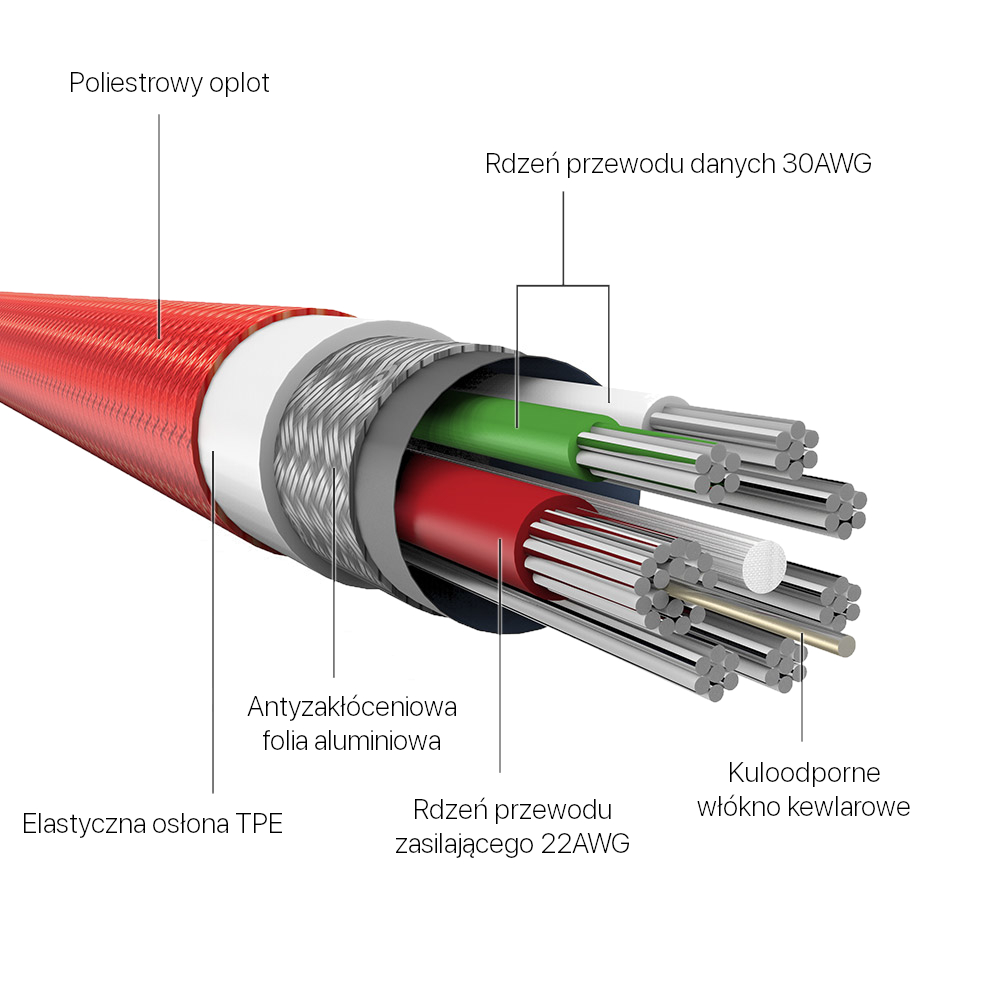 | Rdzeń przewodu | 30 AWG (dane) + 22 AWG (moc) |