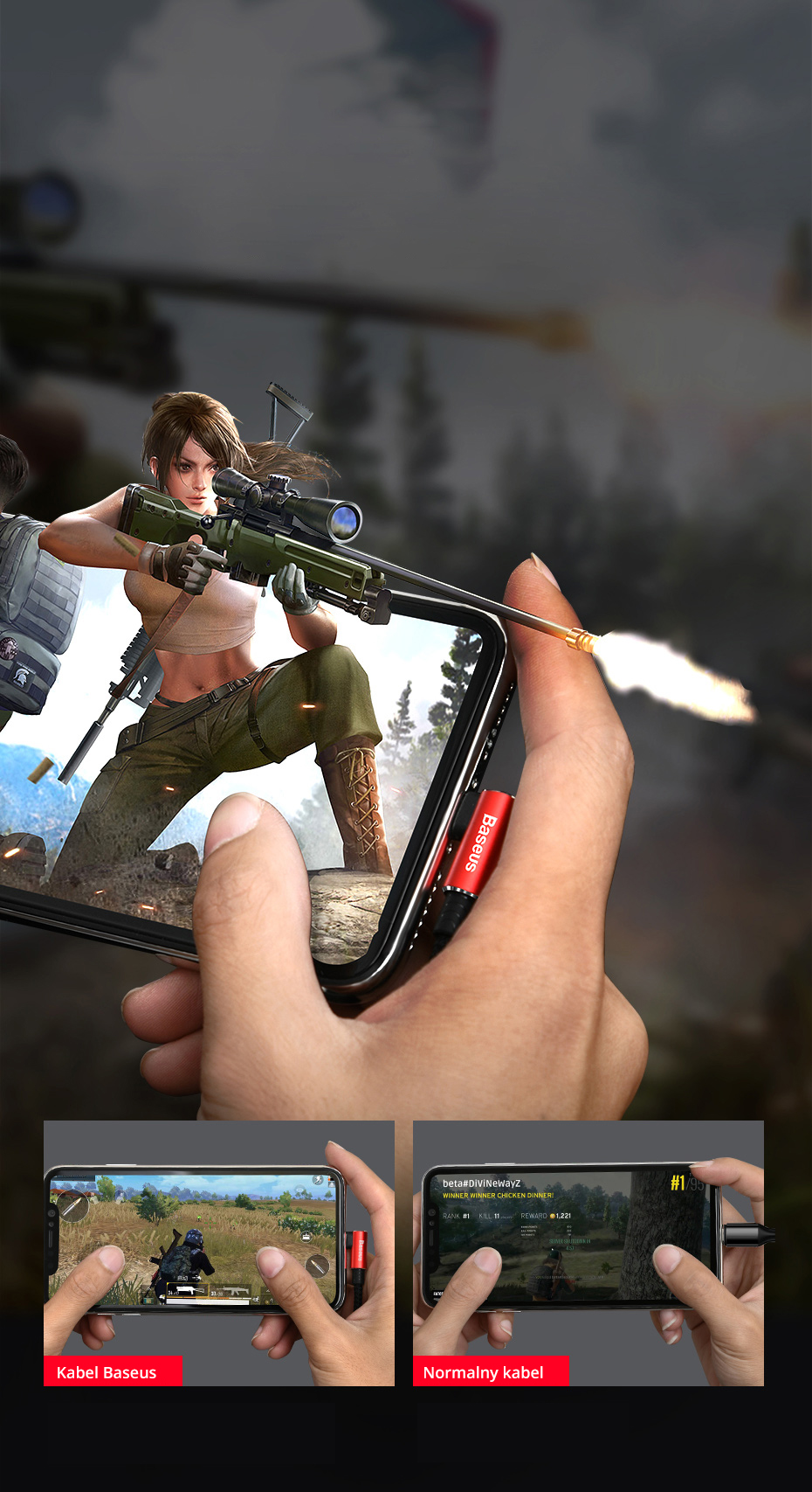 Płaska końcówka pozwala na wygodne granie podczas ładowania. Dzięki temu nie musisz się martwić niskim poziomem baterii podczas toczenia ważnej rozgrywki.