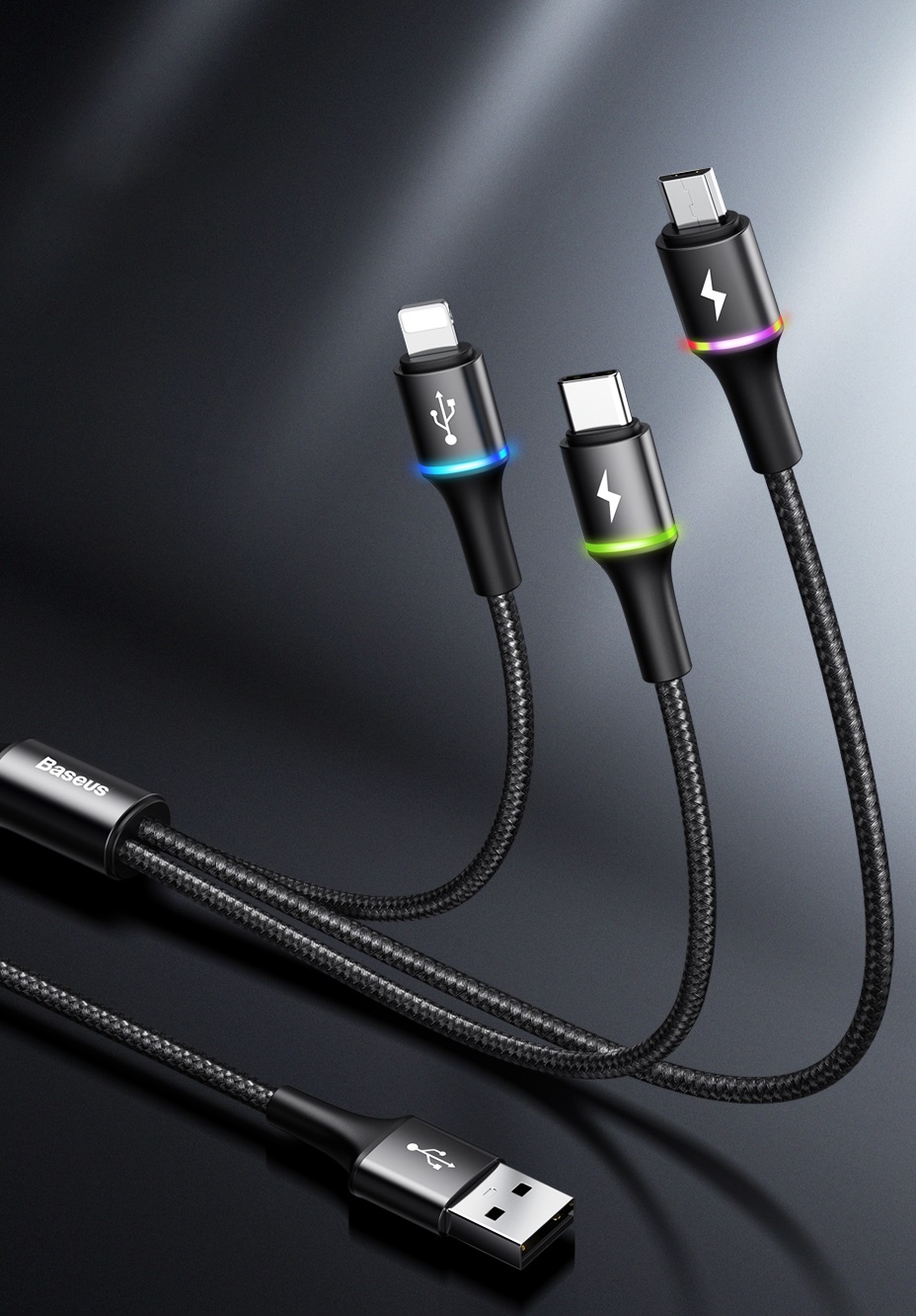 Kabel USB 3w1 Baseus Halo, micro USB / Lightning / USB-C, 3,5A, 1,2m (czarny)