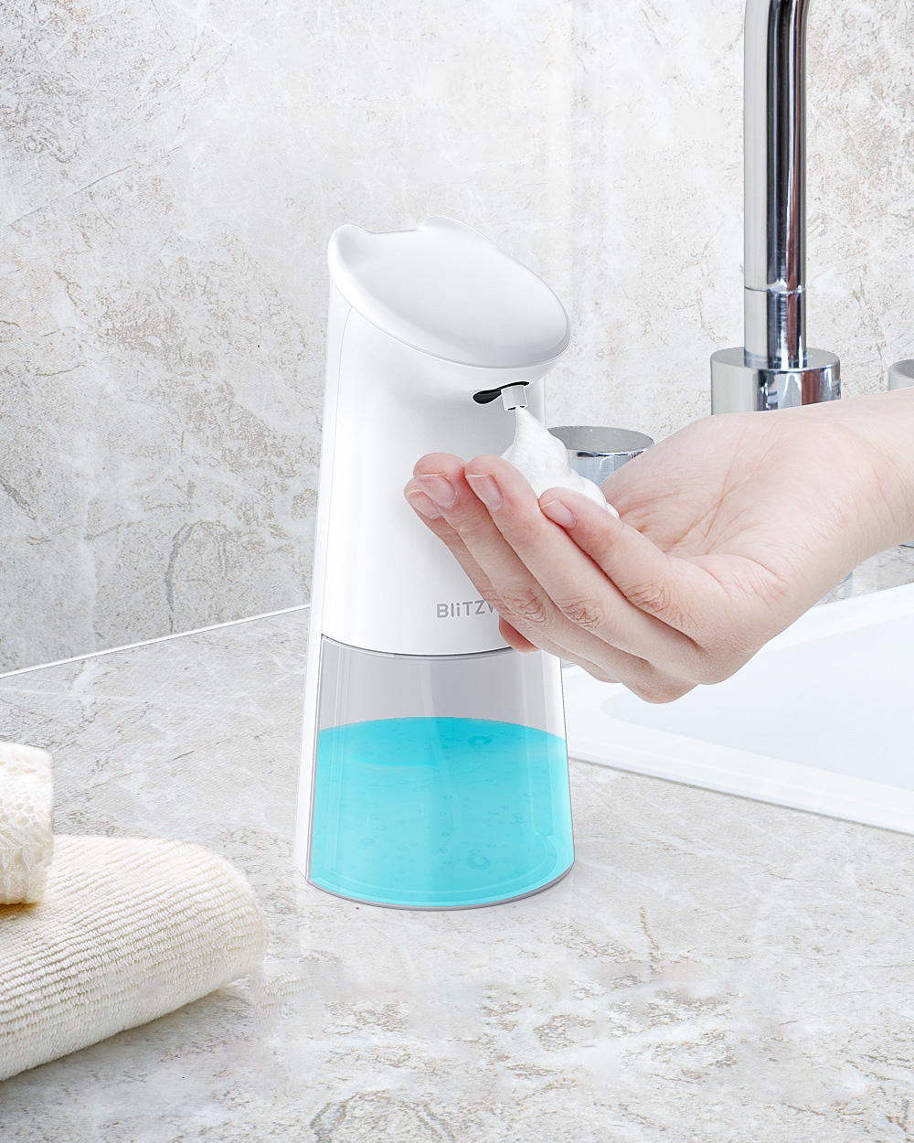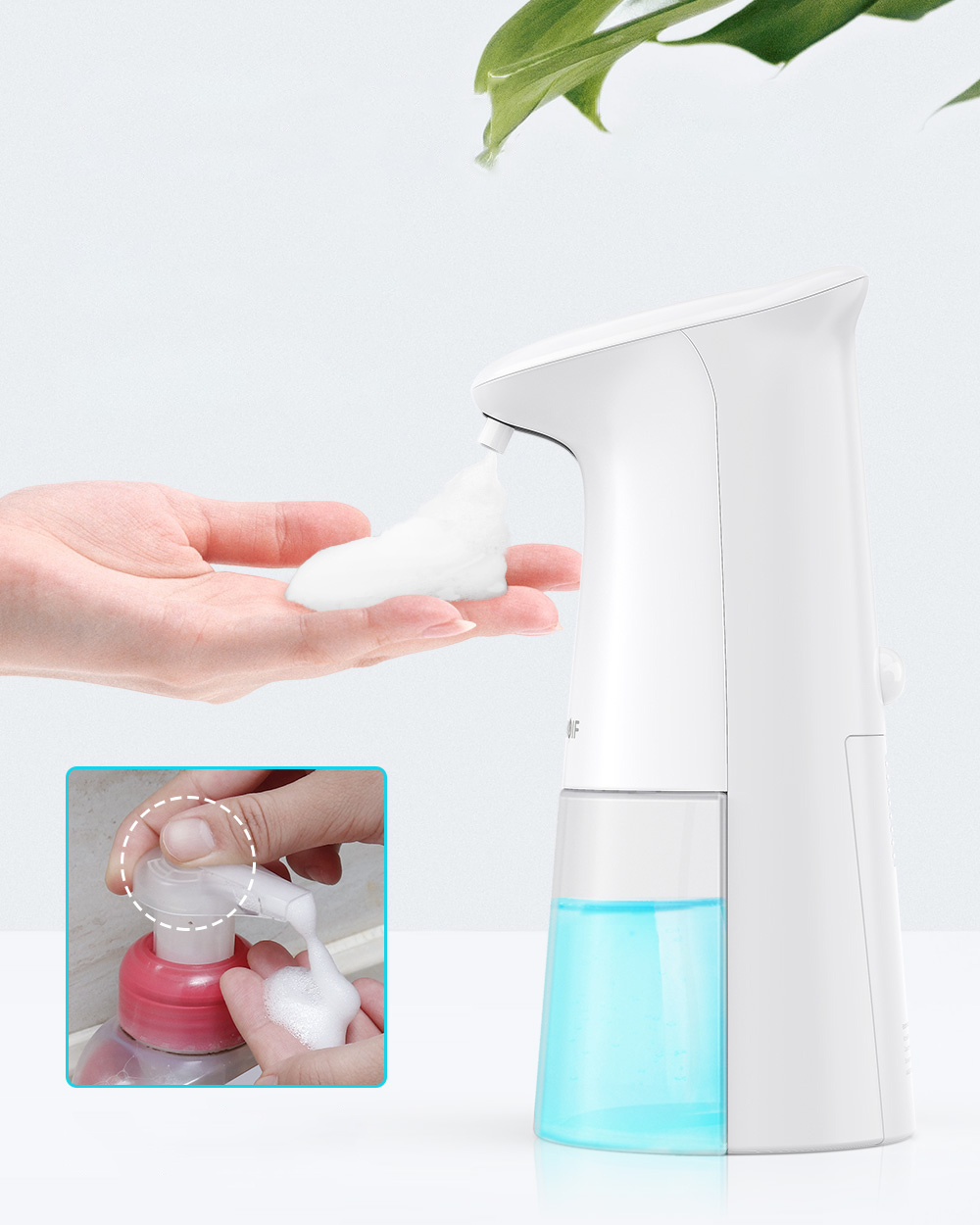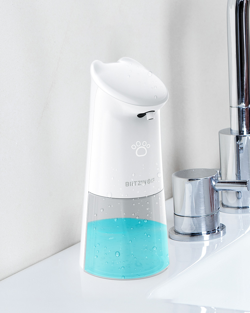 Wodoodporność IPX4 zapewnia bezpieczeństwo użycia dozownika w łazience czy kuchni. Niski pobór energii zapewnia długi czas pracy (dozownik działa na baterie AA). Nowatorska metoda oszczędzania płynu powoduje, że przekształca się on w piankę, dzięki temu żużycie mydła jest zredukowane o 50%. Duża pojemność pozwala na rzadkie uzupełnianie płynu.