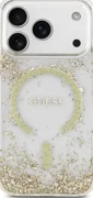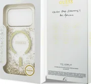 In the center, there is an eye-catching gold MagSafe ring with the Guess logo, emphasizing the prestige and luxurious style of this collection.