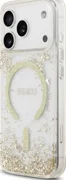 The transparent design is decorated with gold glitter particles, adding a distinctive shine and unique character.