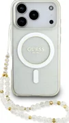The whole look is complemented by a stylish pearl strap, which perfectly matches the case’s color scheme. The letters on the beads form the word “GUESS”, making this accessory not only practical but also exceptionally trendy.