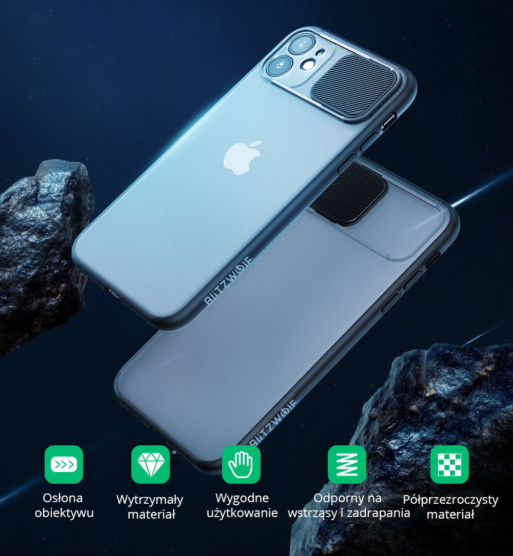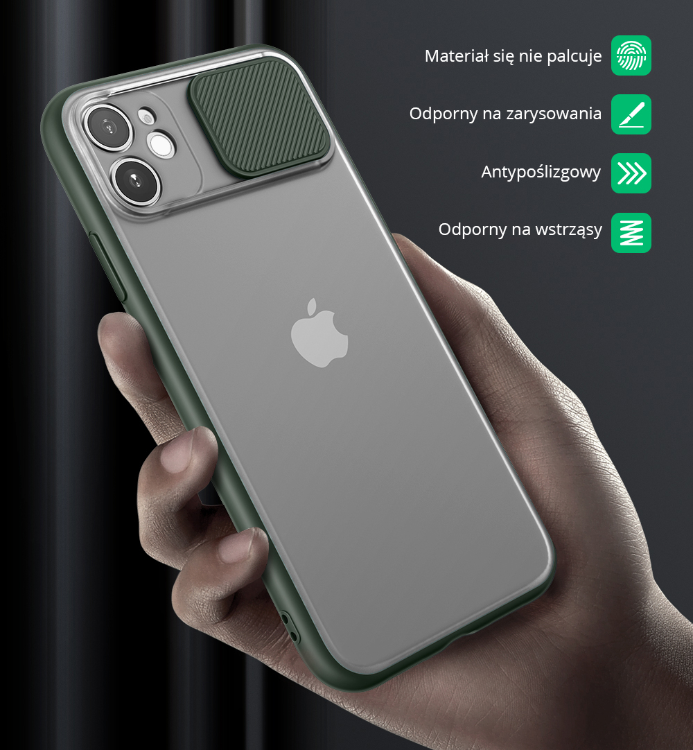 Case wyposażony jest w przesuwaną osłonę obiektywu, dzięki czemu możesz chronić aparat swojego smartphona przed kurzem i zarysowaniami. Poprawia ona również Twoją prywatność podczas użytkowania smartphona.