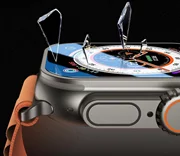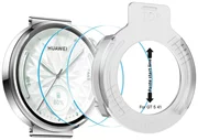 3) Nałóż ramkę montażową ze szkłem na ekran zegarka – szkło będzie idealnie wycentrowane. Zdejmij folię zabezpieczającą z góry szkła, a następnie dociśnij szkło palcem na środku ekranu, aby rozpocząć proces przylegania.