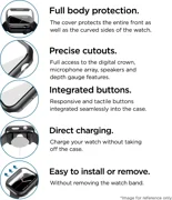 Pełna ochrona ciałaOsłona chroni cały przód, a także zakrzywione boki zegarka.Przejrzystość i responsywność szkłaOchraniacze ekranu Eiger Mountain Glass zapewniają przejrzystość wyświetlacza w wysokiej rozdzielczości. Ultra-cienkie szkło pozwala na responsywne korzystanie z ekranu dotykowego, z "ledwo wyczuwalnym" dotykiem.Precyzyjne wycięciaPełny dostęp do di