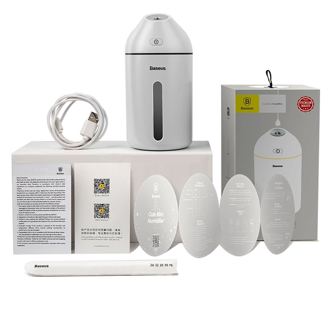 to nawilżacz powietrza, którego zadaniem jest stabilizowanie cyrkulacji powietrza w małych pomieszczeniach. Można go zasilać w uniwersalny sposób tj. power bankiem, ładowarką czy jednostką centralną. Wyposażony jest w lampkę nocną, która umożliwia zlokalizowanie go w ciemności. Dwa różne tryby nawilżania umożliwiają wybór odpowiedniego wentylowania dla pomieszczenia.