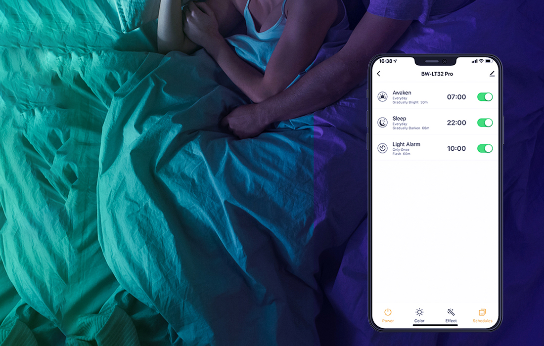 Nie martw się, że zapomnisz wyłączyć taśmę przed zaśnięciem. Możesz ustawić harmonogram, dzięki któremu taśma wyłączy się zgodnie z Twoimi ustawieniami.