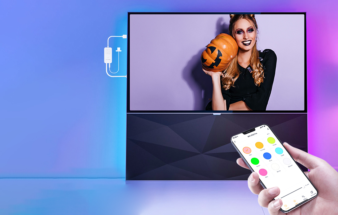 Taśma posiada wbudowany czujnik kolorów, dzięki czemu możesz zsynchronizować ją ze swoim telewizorem, a wtedy oba urządzenia będą świeciły w tych samych kolorach stwarzając niesamowity klimat.