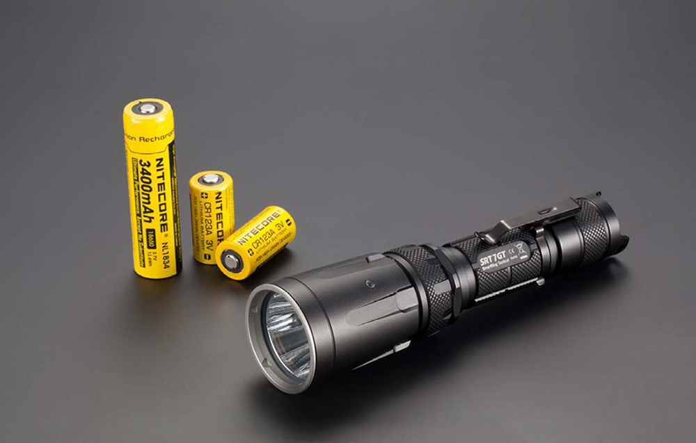 Do zasilania latarki potrzebny będzie jeden akumulator 18650 lub dwa CR123 (brak w zestawie). Czas pracy SRT7GT wynosi do 240 godzin przy najniższym poziomie jasności (0,1 lm). Urządzenie zostało też zabezpieczone przed odwrotną polaryzacją, nie musisz więc obawiać się jego uszkodzenia. Ponadto wbudowany wskaźnik świetlny powiadomi Cię o niskim poziomie naładowania akumulatora.