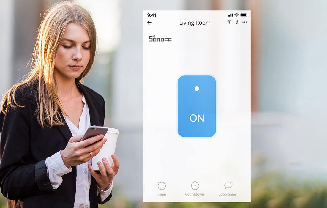 Zyskaj wygodną kontrolę nad swoimi inteligentnymi urządzeniami. Po sparowaniu wybranych sprzętów z przełącznikiem możesz sterować nimi za pomocą aplikacji eWeLink, gdziekolwiek jesteś. Zdarza Ci się zapomnieć o wyłączeniu światła przed wyjściem z domu? Z Sonoff to już nie problem! Wystarczy, że sięgniesz po smartfona. Istnieje też możliwość zdalnej obsługi przełącznika za pomocą pilota RF, który jest dostępny w sprzedaży oddzielnie.