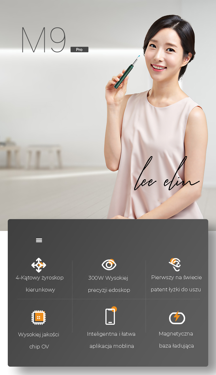 M9 Pro to czyścik do uszu, w który wbudowano kamerkę. Wraz z aplikacją ma pomóc prawidłowo czyścić uszy bez szkody dla zdrowia. Jest bezprzewodowy, posiada magnetyczną stację dokującą i łączy się z aplikacją w smartfonie. Dzięki specjalnym końcówkom i kamerze użytkownik ma być w stanie idealnie wyczyścić uszy, nie wpychając wydzieliny do wewnątrz, co jest dosyć sporym problemem dotychczasowych metod czyszczenia. Jest precyzyjny, ale jednocześnie bezpieczny. Stosowany może być nie tylko do oglądania błony bębenkowej i wewnętrznego przewodu słuchowego, ale także do np. wnętrza jamy ustnej lub nozdrzy. Zapewnia wyraźny obraz i dokładne odwzorowanie kolorów.