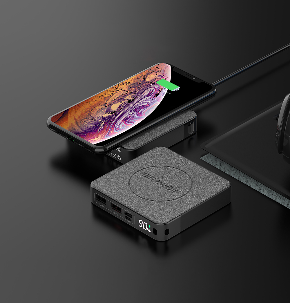 BlitzWolf BW-P13 wyposażony jest, w ładowarkę indukcyjną o mocy 15 W. Powerbank automatyczne dobiera napięcia, dla urządzenia, które ładuje.