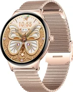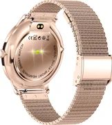 | Aplikacja | Kroki, dystans, kalorie, czas marszu; Statystyki z 7 dni; Porównanie kroków z innymi; Monitorowanie snu + jakość snu; Trendy snu z 7 dni; Trendy tętna z 7 dni; Trendy ciśnienia z 7 dni; Trendy saturacji z 7 dni; Rozszerzone dane treningowe; Pozostały poziom naładowania baterii zegarka; Tarcze zegarka; Ulubione kontakty; Znajdź urządzenie; Format czasu; Jednostki (metryczne/calowe); Ustawienia trybu Nie przeszkadzać; Przypomnienie o ruchu; 24 godz. Monitorowanie tętna: włączanie/wyłączanie; Sterowanie muzyką z telefonu; Tryb oszczędzania baterii; Zmiana języka; Ustawienia przypomnienia o piciu wody; Alarm podwyższonego tętna; Ustawienia pogody; Monitorowanie cyklu / dni menstruacji / owulacji; Ustawienia celu; Automatyczne aktualizacje OTA |