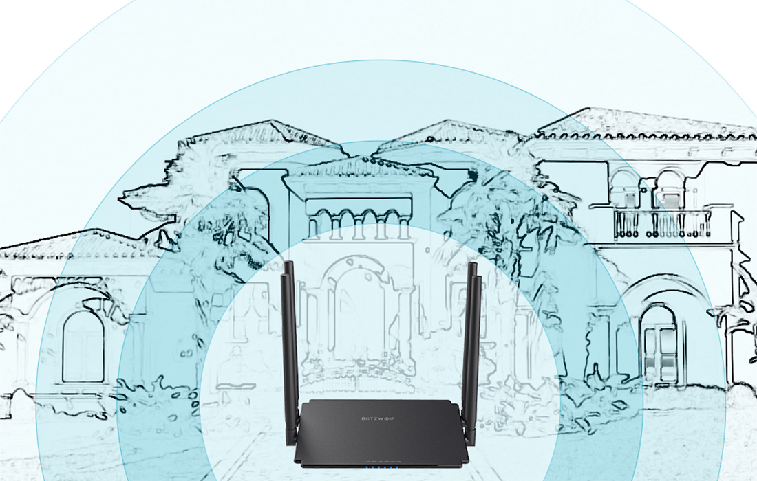 Urządzenie wyposażone zostało w 4 zewnętrzne anteny kierunkowe 5 dBi. Zapewniają one szeroki zasięg i wyjątkowo silny sygnał, który bez problemu pokonuje nawet ściany. Wszystko to sprawia, że możesz cieszyć się niezawodnym połączeniem na powierzchni nawet 80-120m2.