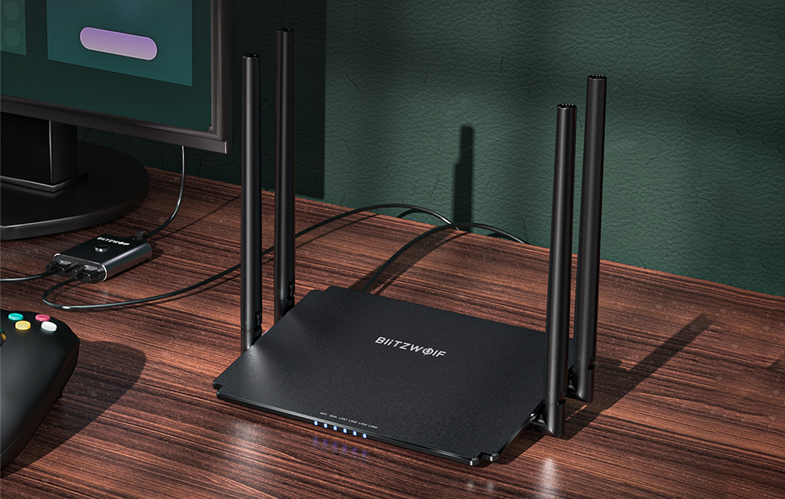 Dwuzakresowy router Blitzwolf pozwoli Ci cieszyć się błyskawicznym, stabilnym połączeniem WiFi niezależnie od sytuacji. Prędkość transmisji nawet 1200 Mbps, 4 niezawodne anteny kierunkowe i podwójny zakres przenoszenia 2,4 GHz + 5 GHz zapewnią szybki Internet w całym Twoim domu. Pamięć 512 MB i możliwość podłączenia wielu urządzeń oferują Ci swobodę, której potrzebujesz.