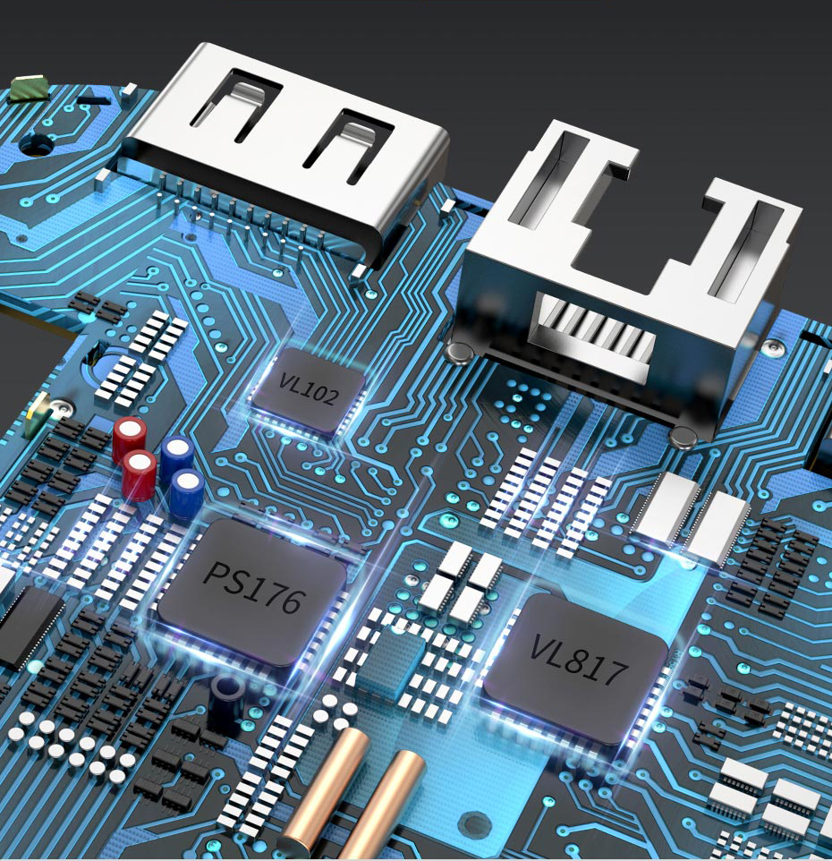 Mocniejszy rdzeń został zaprojektowany, aby urządzenie wyróżniało się na tle innych hubów. Wbudowany główny chip Weifeng 817 zapewnia płynną operację 6 interfejsów. Szybsza prędkość i wyższa jakość pracy. USB 3.0 umożliwia prędkość transmisji, która sięga nawet 5Gb na sekundę, pozwalając w ten sposób na transfer dużych plików w mgnieniu oka.