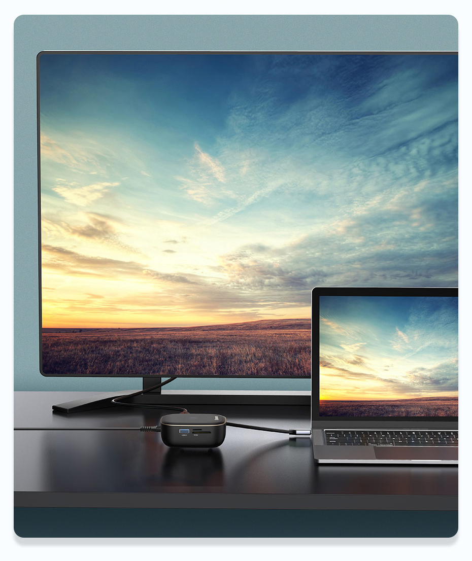 Szybkie ładowanie z mocą 60W umożliwia zasilanie komputera. Już w półtorej godziny możemy naładować notebook Air, co czyni hub porównywalnym z oryginalną ładowarką.Nie musisz ograniczać się do komputera. Hub naładuje również tablet, czy telefon.Porty USB-C 3.0 pozwalają, w zależności od podpiętego urządzenia, osiągnąć odpowiednio 45 oraz 7.5 watów.