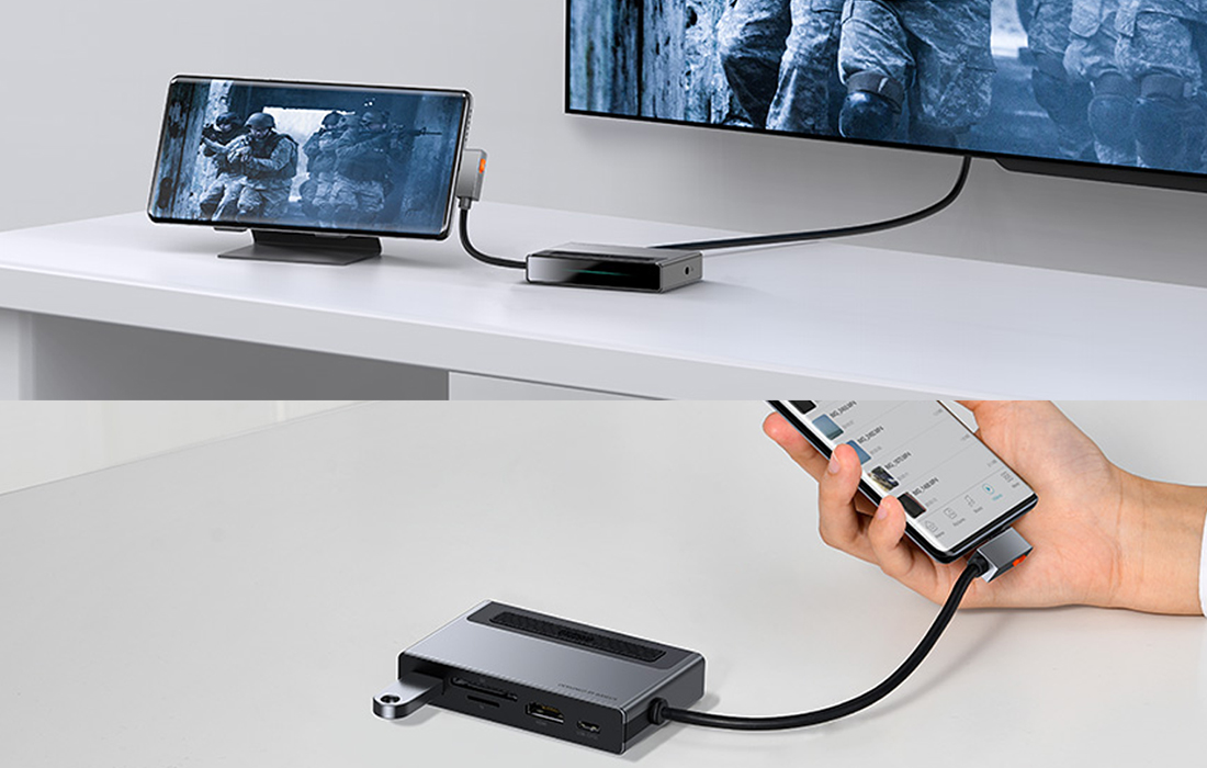 Chcesz obejrzeć film na dużym ekranie? A może czeka Cię ważna prezentacja i chcesz wyświetlić swoim słuchaczom interesujące slajdy? Z hubem marki Baseus to możliwe! Podłącz laptop lub tablet do większego monitora, projektora lub telewizora i ciesz się doskonałej jakości obrazem 4K! Stwórz kino z prawdziwego zdarzenia w swoim domu lub poprowadź zajmujący wykład podczas konferencji - niemal nic Cię nie powstrzyma!