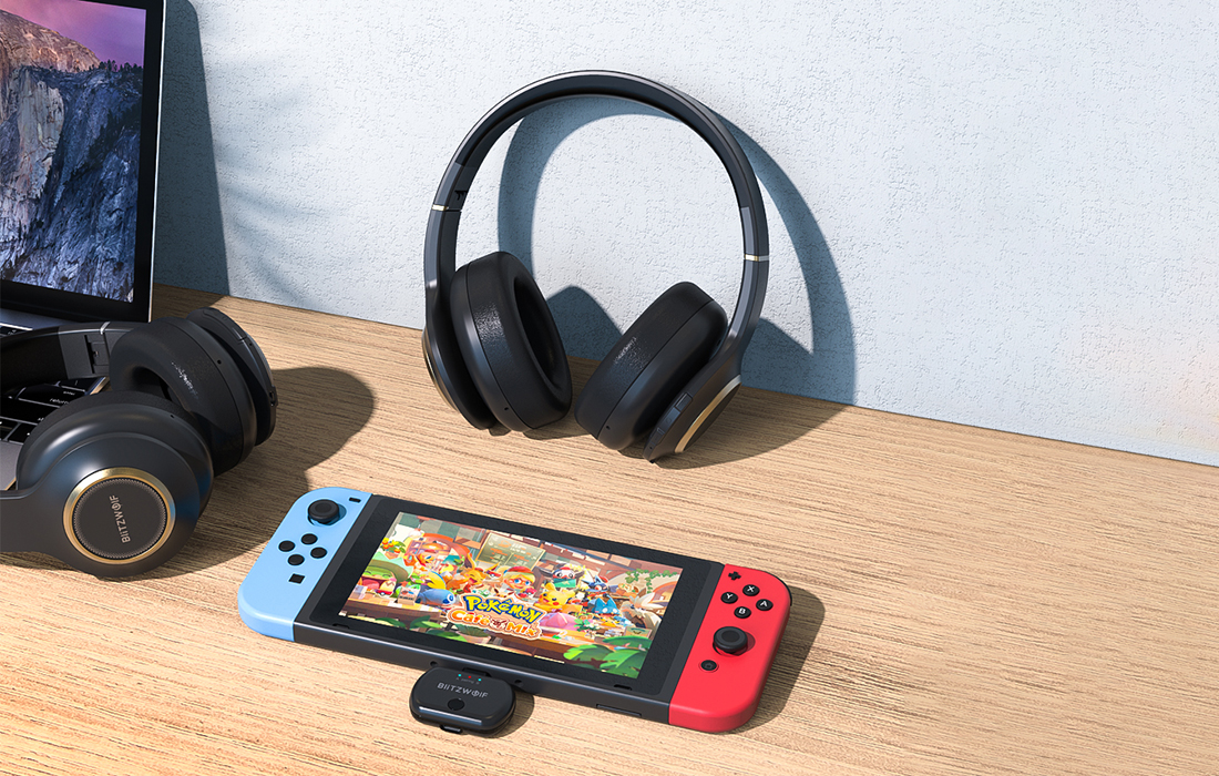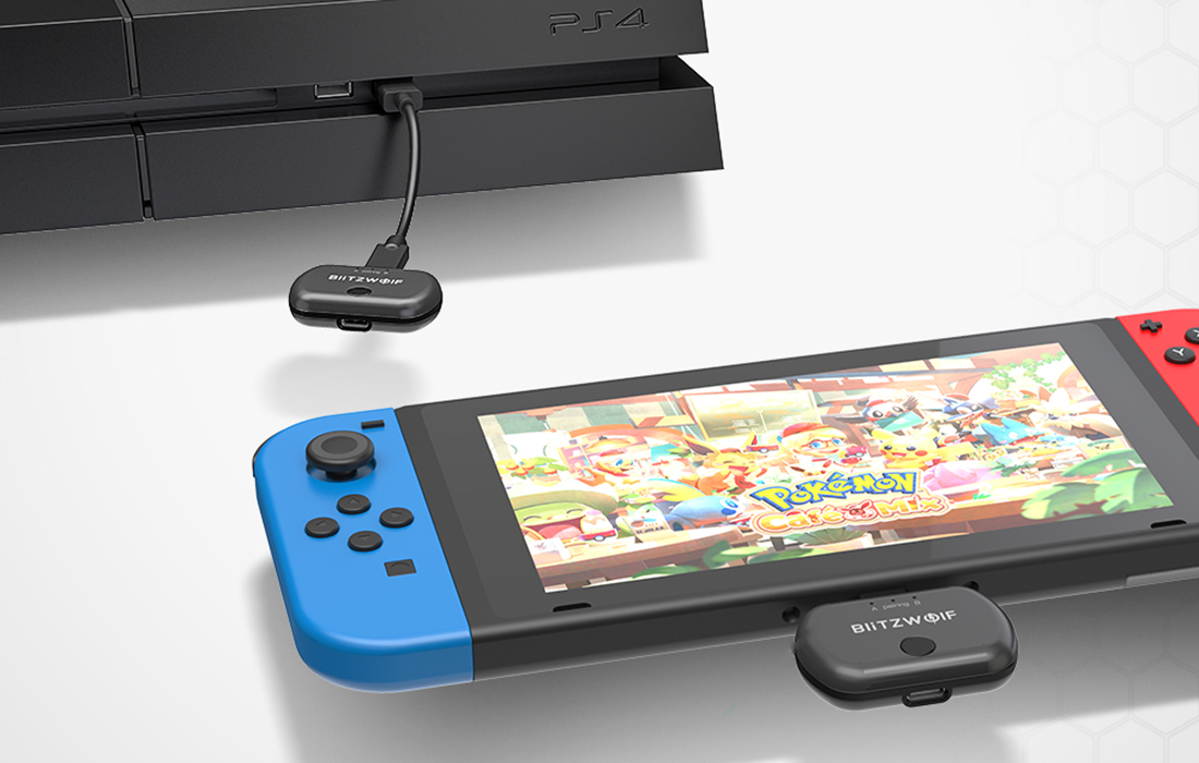Urządzenie zostało wyposażone w porty USB-C, za pomocą których podłączysz je do wielu różnych sprzętów - między innymi do konsoli Switch, PS4 lub XBOX One, a także do telewizora czy laptopa. W roli odbiornika możesz stosować głośniki oraz słuchawki Bluetooth. Możliwe jest również parowanie transmitera z 2 parami słuchawek lub 2 głośnikami.
