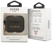 GUESS Silicone Cover. Silikonowe etui chroni stację dokującą słuchawek bezprzewodowych Apple AirPods Pro przed uszkodzeniem powierzchni i możliwą utratą. Wysokiej jakości silikonowa obudowa idealnie pasuje do oryginalnej obudowy AirPods Pro i jest niezwykle przyjemna w dotyku. Z boku etui znajduje się praktyczny, złoty pierścień, który umożliwia przymocowanie etui np. do smyczy.